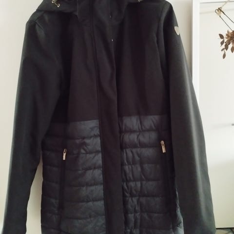 Pieni 42 koko. 56%polyamidia, 40% polyester ja 4% polyuretaania. 5 vetoketjullista taskua. Hupussa irroitettava aito kettukarva.