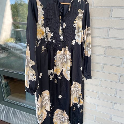 Uniikki Nottinghill -merkkinen mekko. Niskan takaa solmittava malli. Viininpunaisella pohjalla värikkäitä paljettikukkia ja kultaista kirjailua. Koko M/L. Pituus polven yläpuolelle.