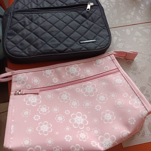 Leveys leveämmästä kohtaa n.17 cm ja korkeus n.15cm. Veskan sisällä lisätaskuja.