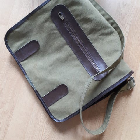 Myydään tekonahkainen käsiveska, missä pois otettava n. 130cm pitkä olkahihna.