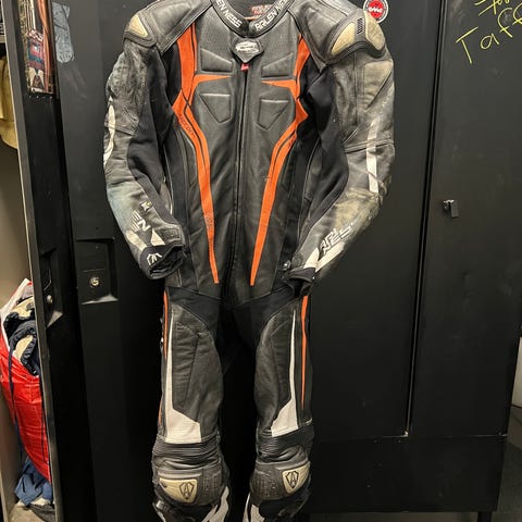 Myytävänä erittäin hyväkuntoinen Arlen Ness, 1-osainen, rei'itettyä nahkaa, selkäkyttyrä, kulutuspalat polvissa. Puvun koko on 38 ja menee kivasti n. 165-170/50-55 mitoille.