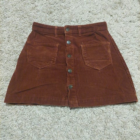 Leveys vyötäröltä 32cm ja pituus 61cm. Sivulla vetoketju. Vahva, vähän jämäkkä materiaali.