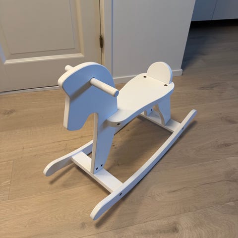 Teddykompaniet keinuhevonen, jossa pehmolampaan muotoinen istuinosa. Lelussa on valkoinen, pörröinen pehmopinta ja puinen runko sekä jalakset. Soveltuu lapselle keinuleluksi sisäkäyttöön. Puurakenne antaa tukea keinumiselle ja pehmeä pinta tekee istumisesta miellyttävää.