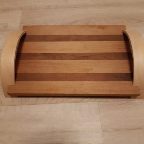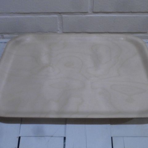 Tarjotin, vaneri 3. Kulmikas vanha Backmanin tarjotin, koivuvaneri