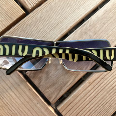 Myydään Miu Miun aurinkolasit. Edestä katsottuna vas. puoleisessa kehyksessä pieni nirhauma (kuva erikseen).