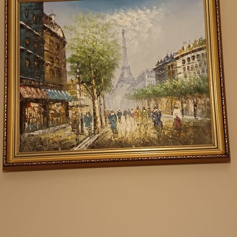 Caroline C. Burnettin "Moulin-Rouge Paris" öljyvärityö. Työn korkeus on 12 cm ja leveys 16 cm. Kehys 21 X 25 cm.