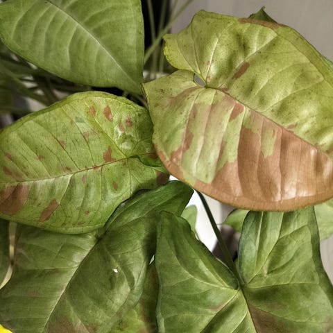 Värivirheellisen nukkumatin taimi. Kasvaa hyvin ja tekee uusia lehtiä. Helppo hoitaa, mutta ei pidä suorasta auringonvalosta.