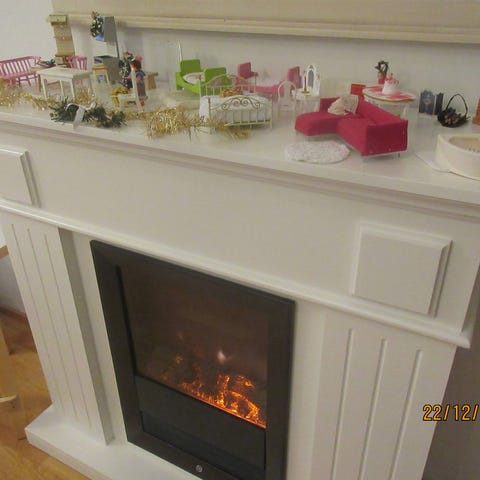 2- kerros Lundby vintage nukkis portailla ja savupiipulla+4 kalustetta