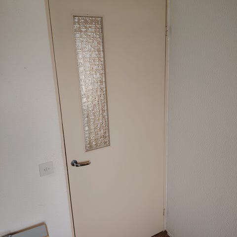 Rakennusajalta joutavaksi jäänyt kauneusvirheen omaava sisäovi ilman karmeja. Oven yläosassa siis hyvin pieni särö mikä ei käyttöä haittaa.