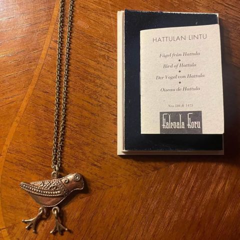 Kalevalan Hattulan lintu riipus, pronssi. Alkuperäisessä rasiassa, kunto kuin uusi.