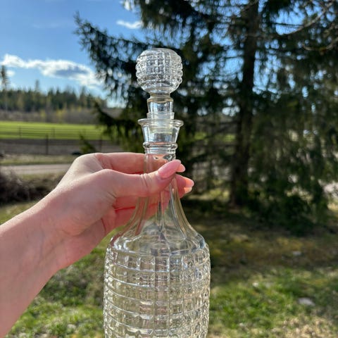 Antiikkikarahvi, josta löytyy pieni särö kahvan juuresta.