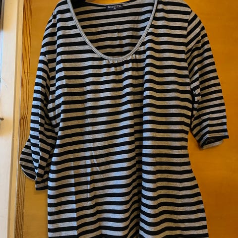 Pitkähihainen trikoopaita värit tummansininen ja valkoinen. Koko 44.
