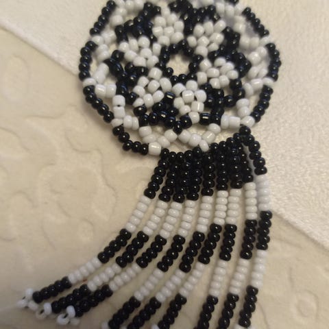Puuhelmikaulakoru vaijerilla ja magneettilukolla. Ympärysmitta n.45cm.