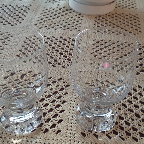 Tapio Wirkkalan suunnittelemat Joiku-sarjan valkoviinilasit. Korkeus 11cm, halkaisija 7cm. 5kpl vain muutaman kerran käytössä olleita laseja. Ei tarroja.