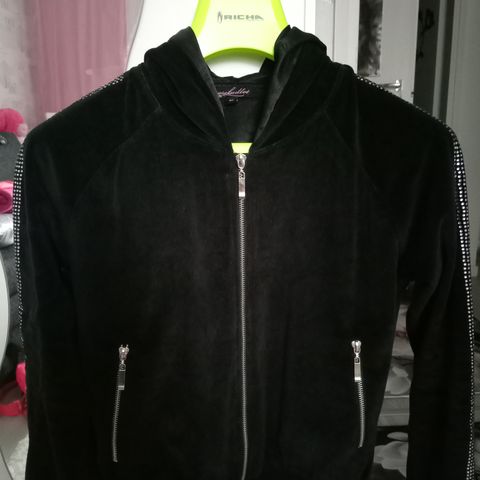 Musta hupparitakki hopeisilla siivillä selässä. Hupun sekä edustan reunoilla hopeista blingiä. Säädettävät hihat ja helma. Ei käytetty. One size suht reilu koko. Kainalo-kainalomitta n.65cm.