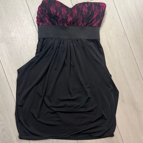 Muutaman kerran käytetty, pitkähihainen mekko. Pituus kaupan päärmeestä helmaan n. 83 cm. Materiaali: viskoosi 59%, lyocelli 23%, polyamidi 18%.