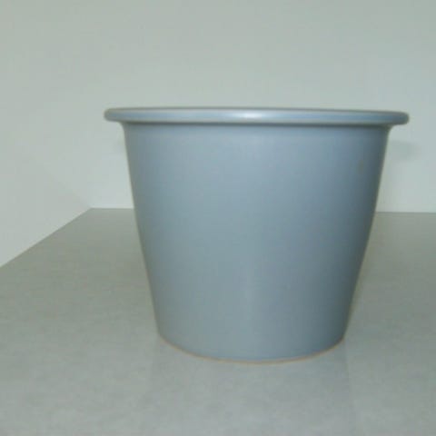Ehjä ja siisti tummanharmaa kukkaruukku / suojaruukku. Halkaisija 13,5cm, korkeus 15,5cm.