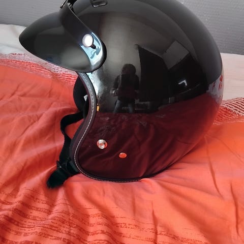 Vain kerran, maksimissaan kaksi käytössä ollut Held:n umpikypärä ja silloinkin käytetty suojahuppua päässä, eli kypärä on kuin uusi. Koko M. Mukaan tulee lippa, tumma ja vaalea visiiri sekä säilytyspussi kypärälle. Ei tippunut, ei kolhittu. Kaikin puolin siisti ja näyttävä. Tässä kypärää seuraavalle pitkäksi aikaa.