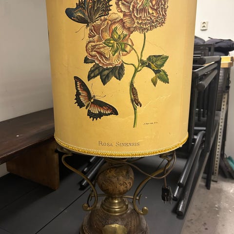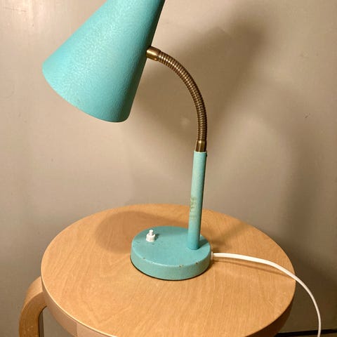 Pullovalaisin 5 m johdolla. Vanha ja kulunut, mutta toimiva. Korkeus kuvun kanssa n. 44 cm. E27-kanta.