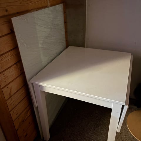 Valkoinen pöytä, myydään kasattuna tai purettuna.