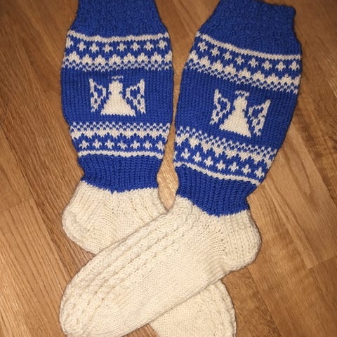 Lämpimät villasukat. Joustava kudos. 7-veljestä karkkiraita lanka. Koko 38-39.