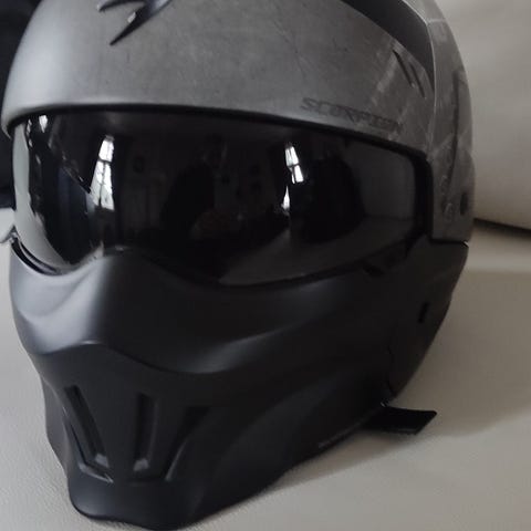 Muutaman kerran käytetty Scorpion Exo-920evo kypärä, koko M. Avattava malli, aurinkosuojalla. Ovh 200€ sis Sena SF2 kypäräpuhelinjärjestelmän ovh 135€