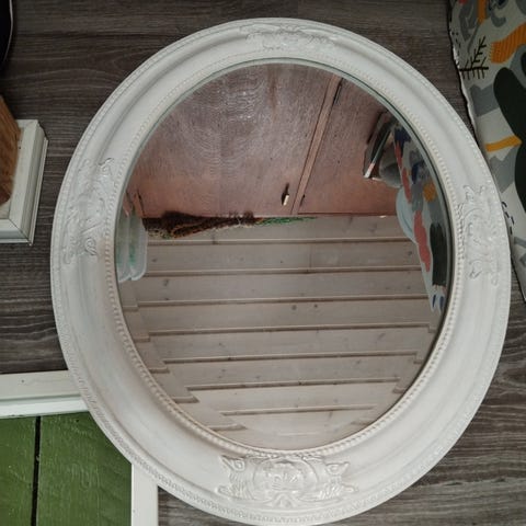 Myydään pieni peili jossa isohkot valkoiset kehykset suhteessa peiliin.Koko noin jakkaran istuimen kokoinen. Nouto Ylöjärvi käteisellä tai mobilepayllä.