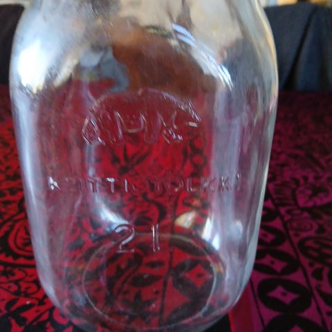 Vanha lasitölkki säilöntätölkki lasipurkki säilytystölkki Karhula Riihimäki Ilves lasi