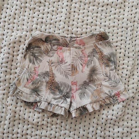 Lasten pitkät farkkushortsit kokoa 98. Ollut kahdella lapsella käytössä, mutta edelleen oikein siistikuntoiset. Vyötäröllä joustokuminauha ja koristenauhat.