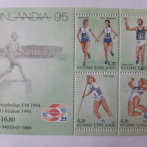 Hakusanat: postikortti, postimerkki, erkoisleima, Yleisurheilu, Maailmanmestaruus, 1983, Lasse-jänis, keihäänheitto,