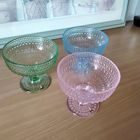Iittala Kastehelmi jalallinen jälkiruokakulho mattakirkas 8 kpl