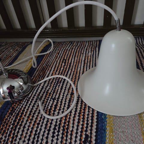 Mitat: halk.30cm, kork.21,5cm ja mustan säädettävän tekstiilijohdon max pituus n.3m.