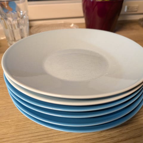 Mielellään settinä myyntiin, tästä vaikka uuteen kotiin sinisiä laadukkaita astioita! Suoraan käytöstä. Astiat ehjiä, ei mitään halkeamia yhdessäkään astiassa.