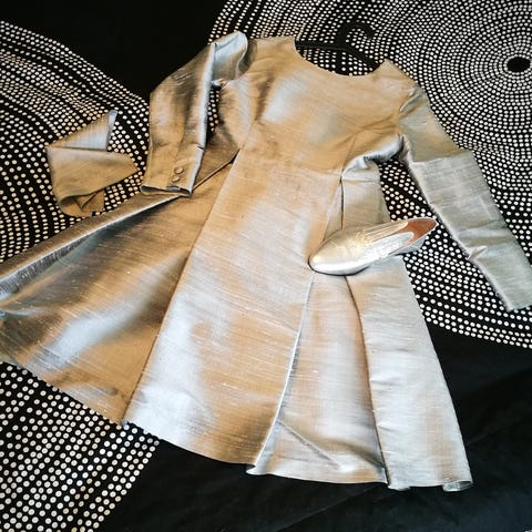 Mekko.Vintage LÖYTÖ, hohtava raakasilkki,kaunis M