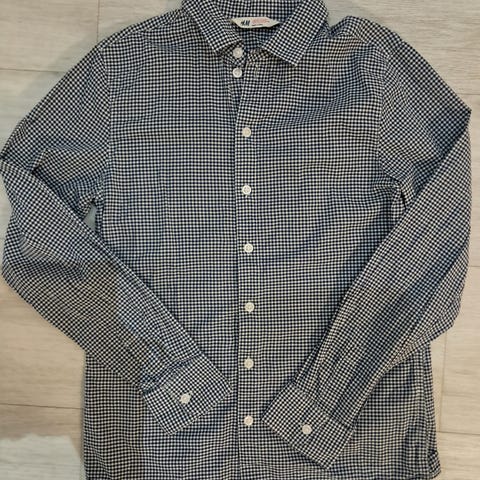 Ruudullinen kauluspaita, jossa kiva kangasmerkki rintataskussa. Siisti ja tahraton paita.