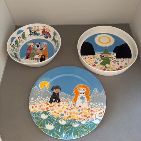 Muumisarjan Ystävyys- tarjoilulautaset, 2kpl. Käyttämättömät, tarrat paikoillaan. Halkaisija 30cm. Muumimukin hinnalla. 36e/ kpl. Nouto tai postitus.