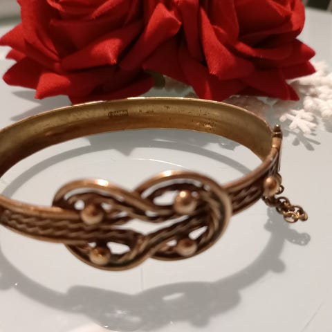 Pronssi rannekoru , Germund Paaer suunnitteli 1940-luvulla . Saranoitu tappelukohtaus. Rungon leveys 10 mm , solmuosan 20 mm.