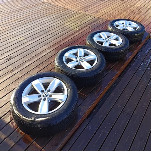Alkuperäiset ja takuusuorat vanteet 6,5" et 41 Michelin Primacy 4 215/60r16 renkailla, joissa kaikissa pintaa +4mm.