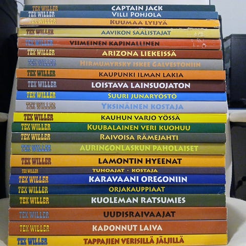 Läjä Tex Willer suuralbumeja, kunto hyvä, hinta 7 eur / kpl. Lisäkuvia pyynnöstä, ei ole töhryjä tai "omistuskirjoituksia", pääosin kerran pari luettuja.