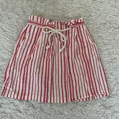 Myynnissä kuvan vähä käytetty hyväkuntoinen hame jossa laskos etupuolella.