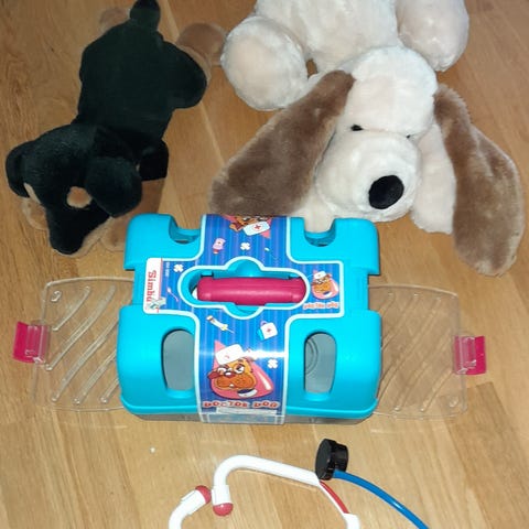 Pehmeä iloisen värinen koira, jonka korkeus n. 20 cm. Mukana tulee sen oma kantokassi.