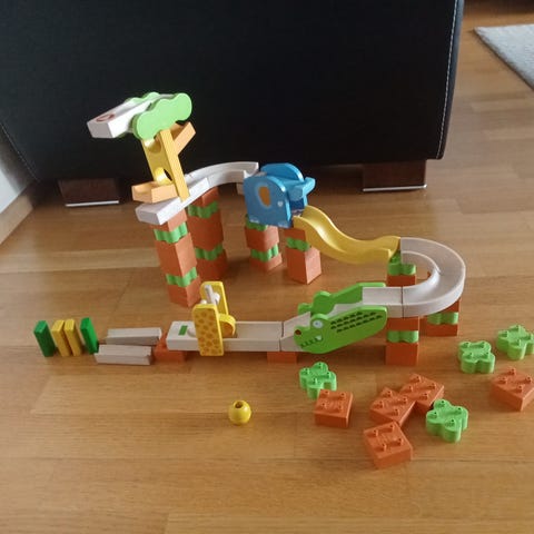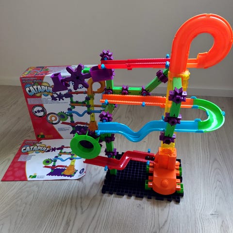 Myydään kaapista pois vähälle käytölle jäänyt kuula rata jossa on kaikki osat tallella ja pienet muoviset kuulatkin.