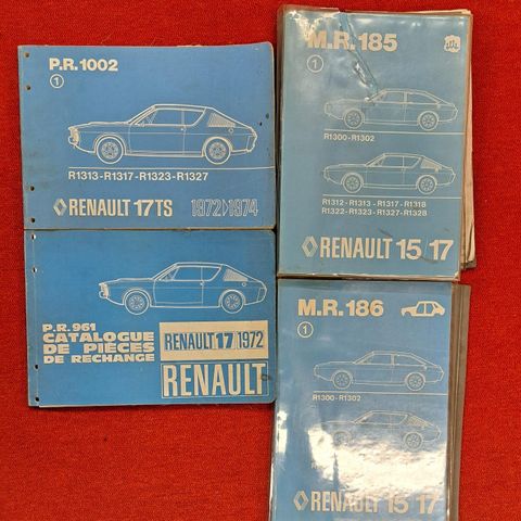 Renault 12 varaosakirja ja korjaamokäsikirjat, tekniikka ja kori eri kirjoissa. Yhteensä 3 kirjaa.
