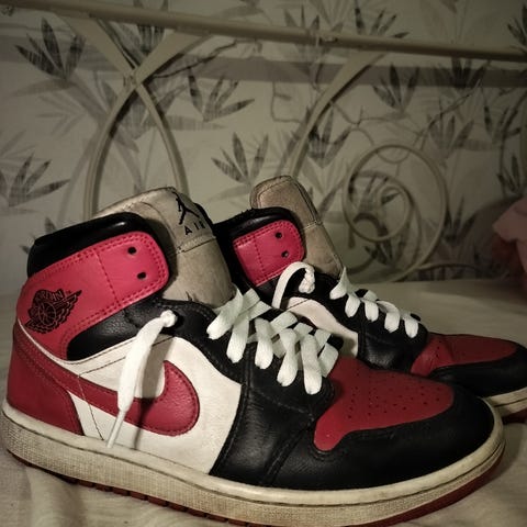 Nike Jordan 1 high väriltään Lucky Green. Täysin uudet ja käyttämättömät kooltaan 41. Mukana tulee boksi, kuitti ja kahdet nauhat mustat ja vihreät. Viestiä laittamalla lisäkysymykset.