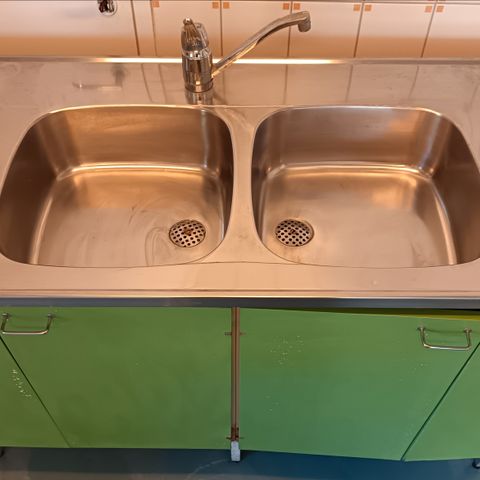 Myydään pölyinen käytöstä poistettu teräksinen pieni tiskipöytä.