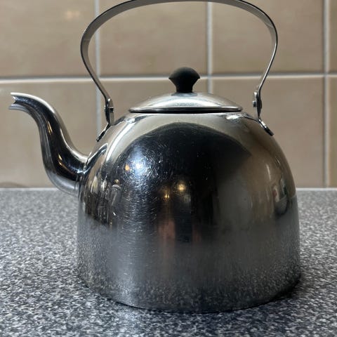 Kahvipannu 1,5 litraa ruostumatonta terästä, siisti. Toisella puolella lommo. 15 e + mahdolliset postikulut