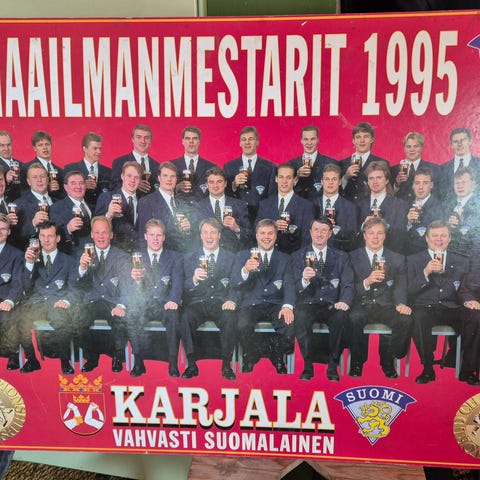 Maailmanmestarit 1995 Suomi laminoitu mainos