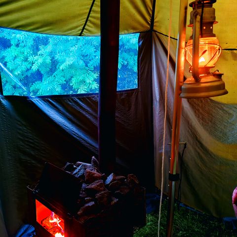 4 henk telttasauna ja kamiina.