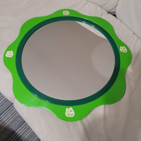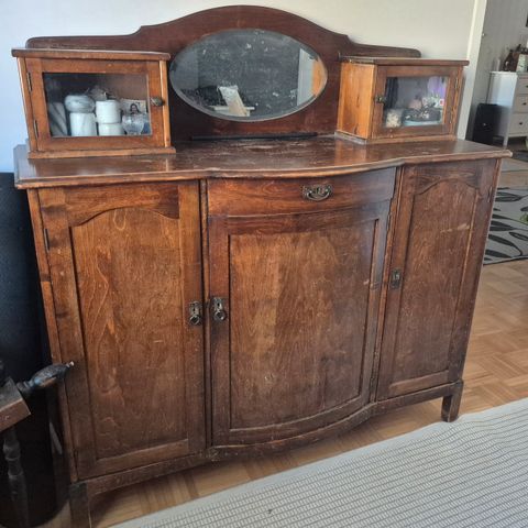 Antiikkinen upea puukehyksinen kuvastin hienosti ”krakeloituneella” viistoreunaisella peilillä.