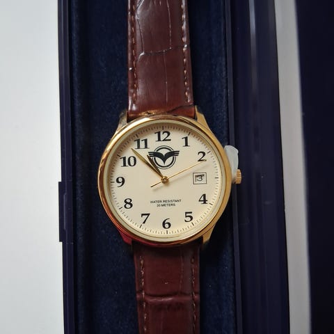 Rannekello. Kellotaulun halkaisija: 3,5cm. Musta rannehihna tekonahkaa. Hihnan pituus: 24cm. Käyttämätön. (Nouto tai postituskulut 5,50;- lisätään hintaan).